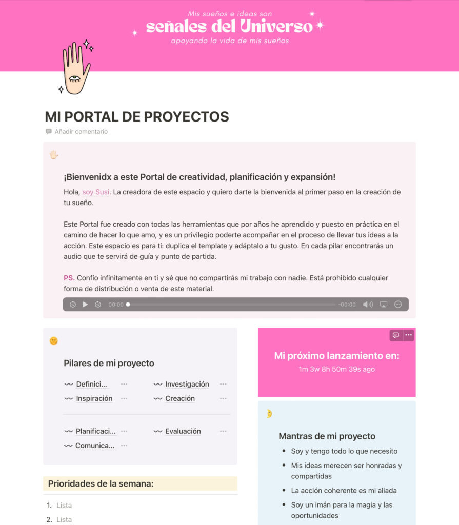 En este portal y template en Notion encontrarás una guía detallada con todos los pilares y pasos que necesitas para convertir tus ideas en acciones concretas.